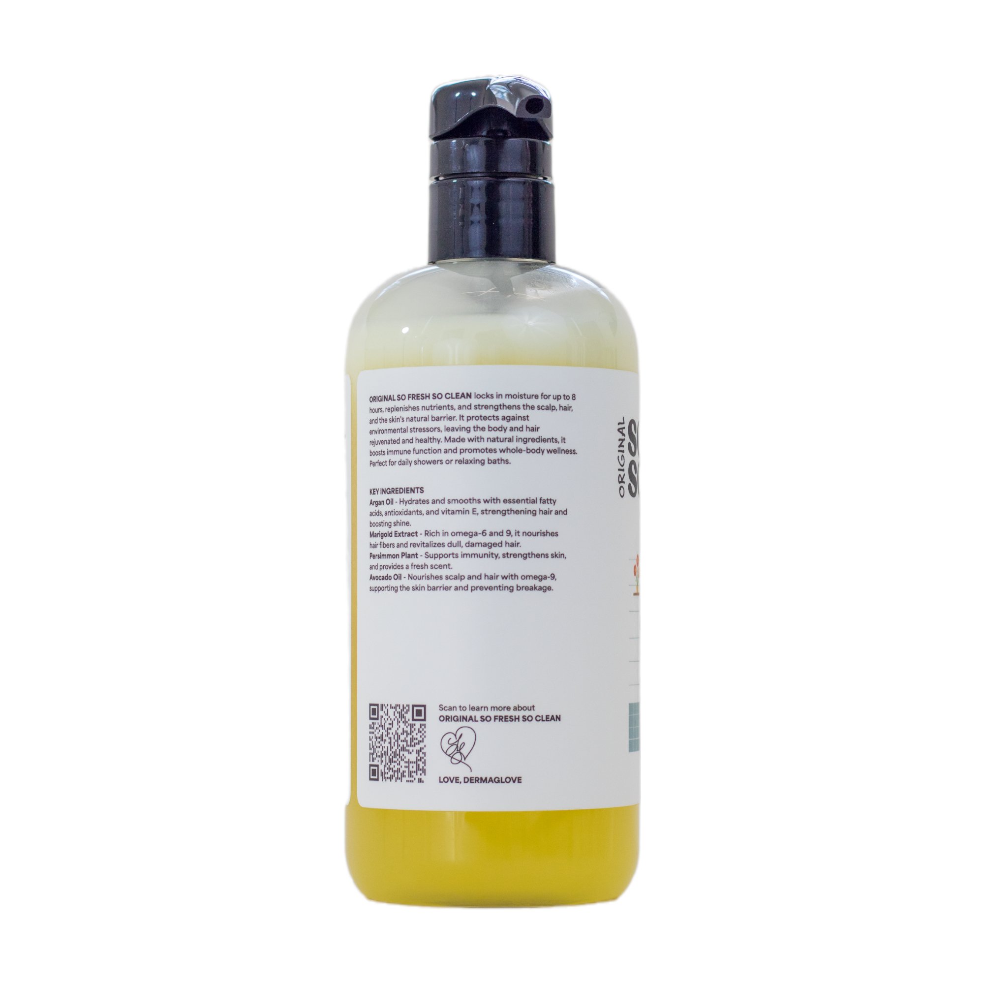 SO FRESH SO CLEAN locks in moisture for up to 8 hours, replenishes nutrients, and strengthens the scalp, hair, and skin’s natural barrier. It protects against environmental stressors while leaving the body and hair rejuvenated and healthy. Made with natural ingredients, it boosts immune function and promotes whole-body wellness.